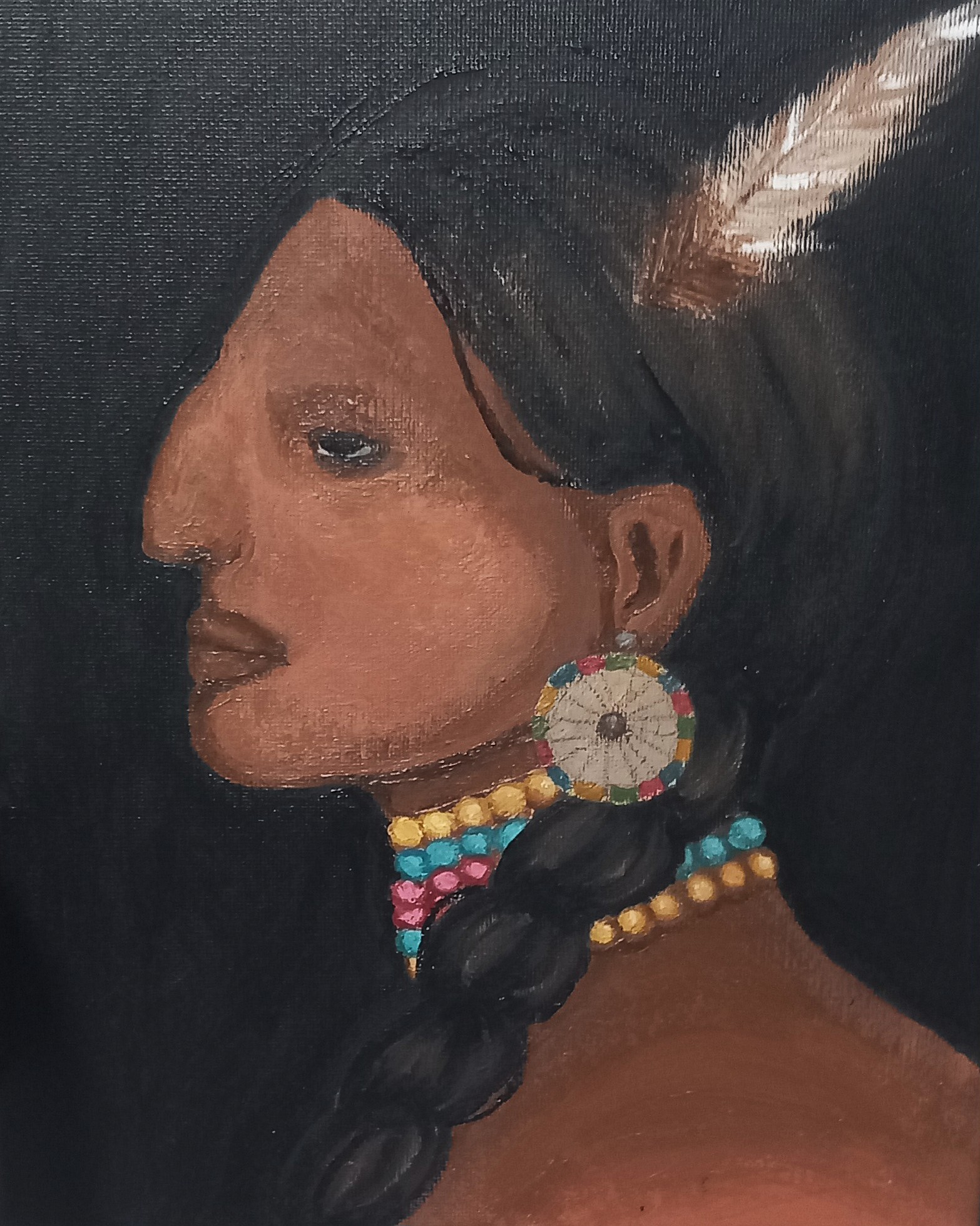 Here I attempted to draw with acrylic paints on a canvas for the first time. The Person is referenced by many different parts of the Native American cultures.